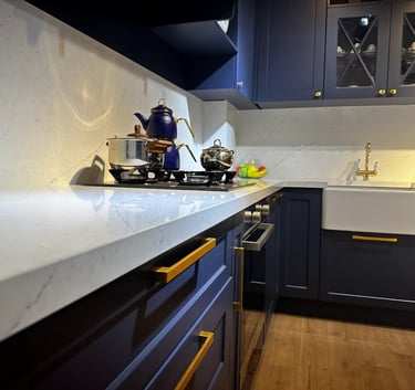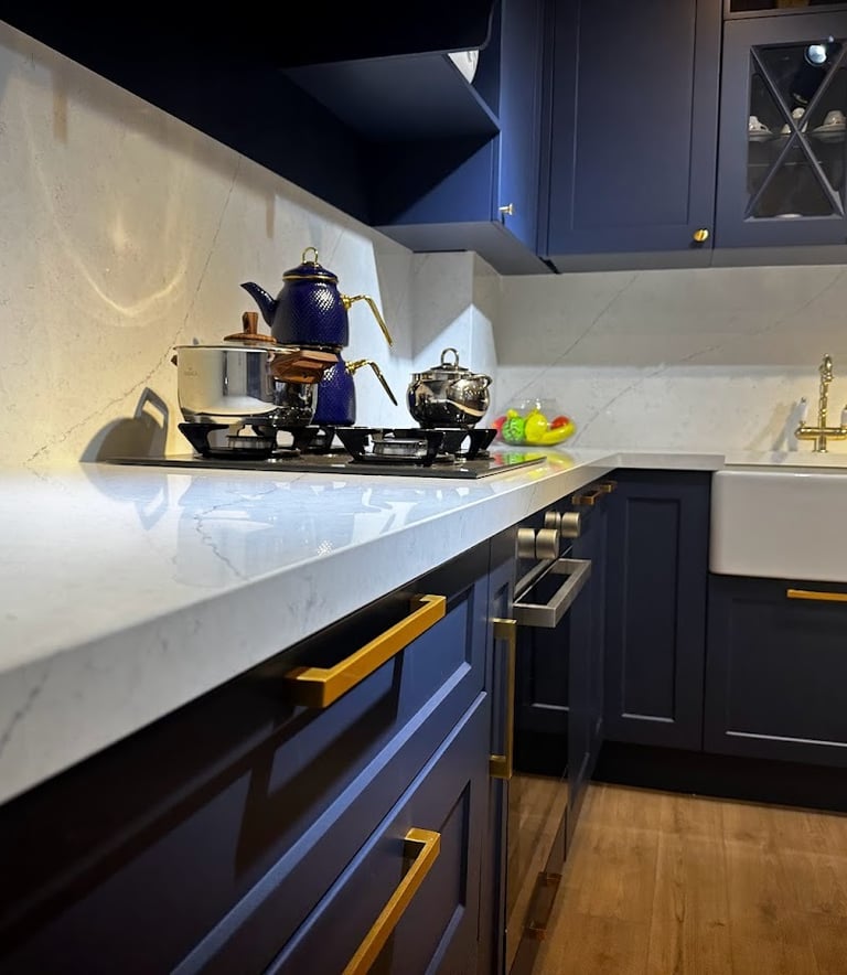 Mermer, granit ve kuvars mutfak tezgahlarında özel üretim ve profesyonel uygulama için